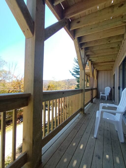 Soak in all the smells of Woodsy Beech Mountain Flora. Watch wildlife from your extended balcony and deck that spans both bedrooms with sliders. You will see several species of birds, deer, bear, ground hog, chipmunks,and more from the safety of your porch ! We are near the ski area. Open floor plan Fireplace Beautiful cozy bedrooms with cable tv and special welcome Hänsel and Gretel treats & one bottle of complimentary wine !